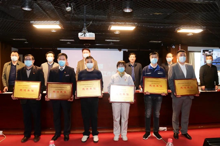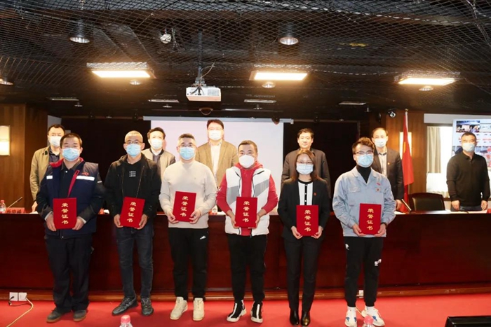 安全环保部部长马明荣作2021年安全工作报告;孙绍刚宣读表彰决定;与会领导为获得北京市及集团表彰的先进单位和先进个人代表颁奖。