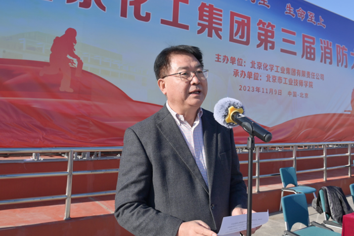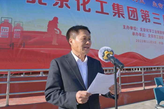 在全国第32个“119”消防宣传日当天,北京化工集团第三届消防大比武在技师学院举办,党委书记、董事长陈宇致开幕词,党委副书记吴瑞峰主持开幕式并致闭幕词,党委常委、副总经理韩宝海主持闭幕式,来自全系统的350多名职工参加大比武。