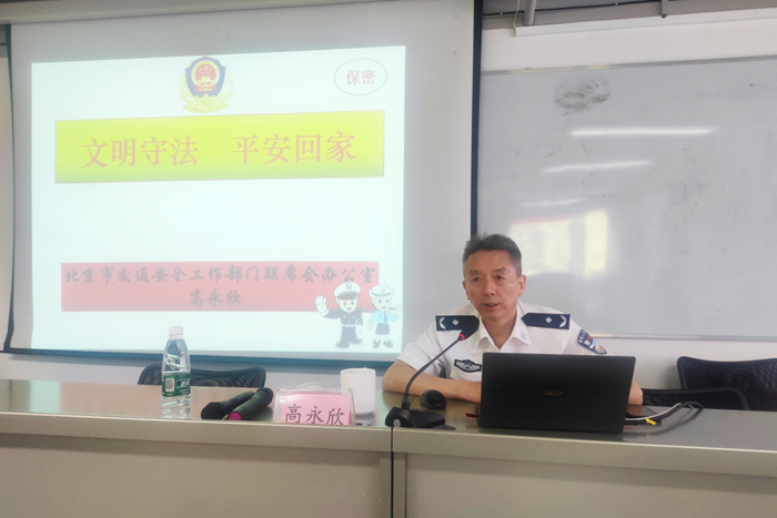 北京市交通安全工作部门联席会办公室高警官围绕酒后驾车、超速行驶、闯红灯、疲劳驾驶等严重交通违法行为与学员进行了探讨,并从“加强宣传教育,提高法规观念和防范意识”等5个方面对今后交通安全工作开展提出了建议。